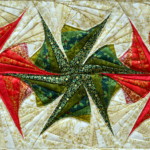 šité tradiční patchworkovou technikou se skládají ze tří vrstev, kterým říkáme sendvič. Horní ozdobný top je ušitý touto technikou, sešíváním jednotlivých dílků. Jako materiál používáme stoprocentní velmi kvalitní bavlnu, která je předem vysrážená a je stálobarevná. Střední vrstva je výplňový materiál, většinou Sakon. Třerí vrstva, spodní strana, je opět bavlněná. Všechny tyto vrstvy jsou prošity, proquiltovány dohromady. Právě díky střední objemové vrstvě se celý výrobek stává plastickým, zvýrazňujícím vzor.